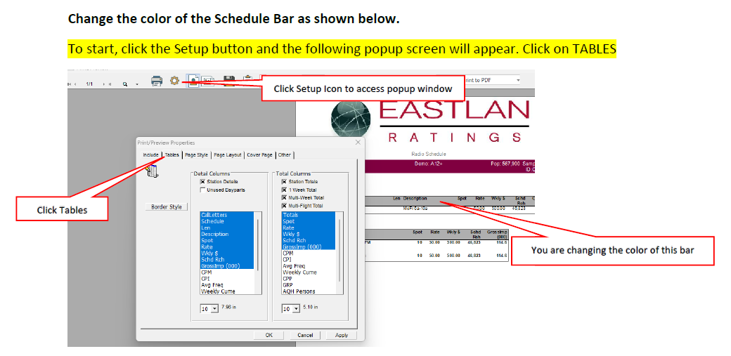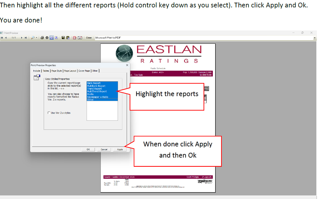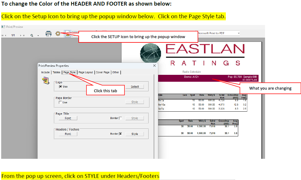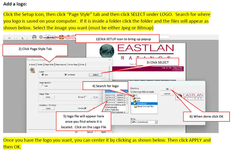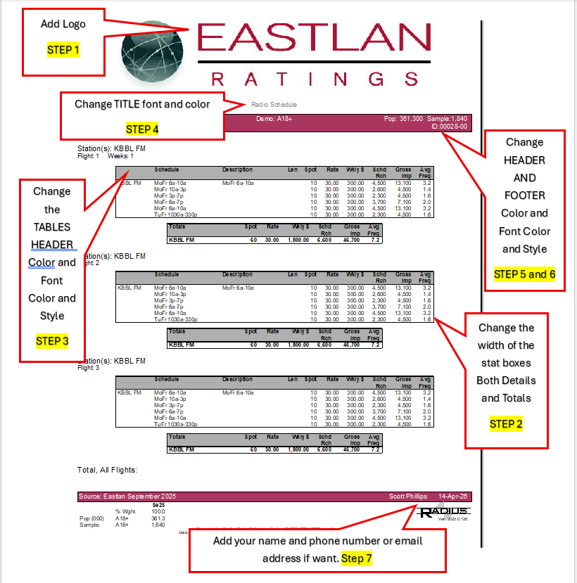 Do you want to add your logo to the reports? Do you want to change the colors or the bars on the report and more? The image below shows you what elements you can change on the report to customize it. It also shows you which step to scroll to so you can learn how to change that element. CRITICAL: Be sure when you are done designing the report to do the last step (8) so that your design will appear on all reports (Ranker, Trender, Profiler, Scheduler). You can download the attached PDF for a PDF version of design instructions if you prefer.