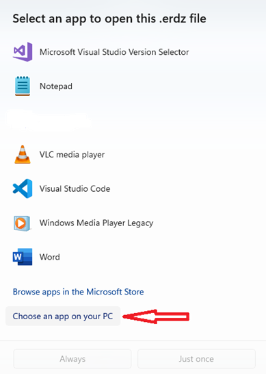 On the popup window left click on Open With. That will open a side window. Click on Choose Another App